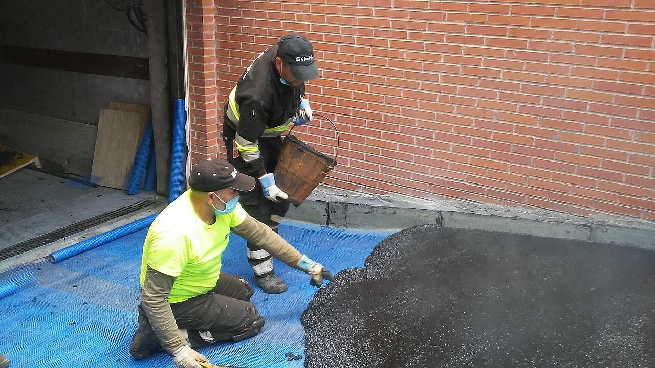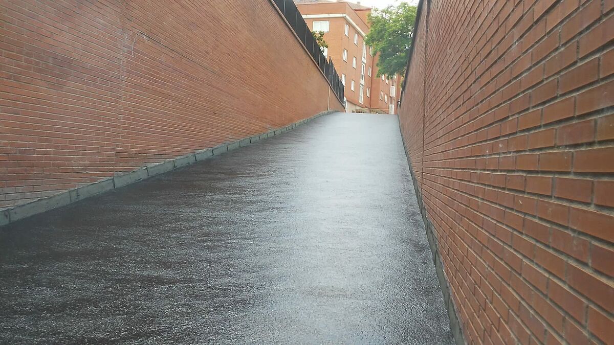 El equipo de Clunia asfaltos fundidos ha terminado la impermeabilización de una nueva rampa de acceso a garajes.