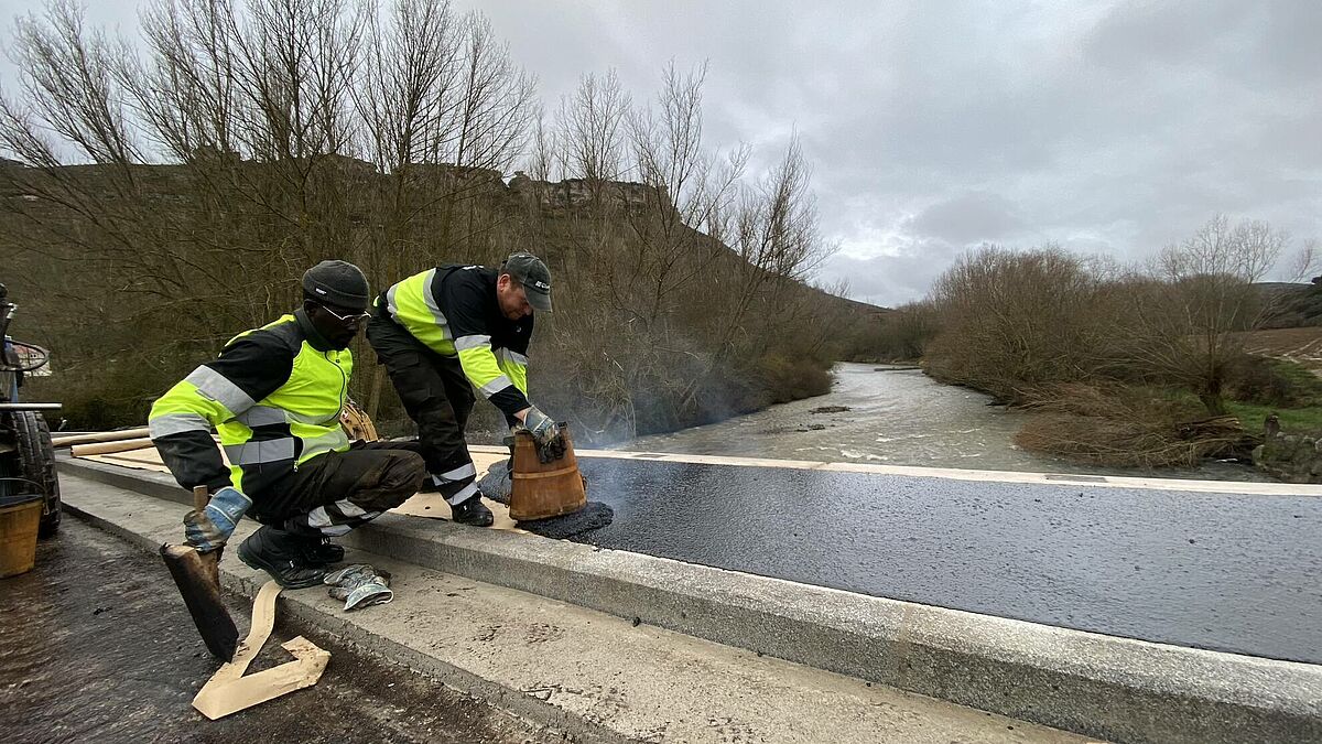 Descripción del proyecto: Nos desplazamos al municipio de Villaescusa de las Torres, rincón de la montaña palentina y único acceso al monumento natural de las Tuerces a realizar la pavimentación de un nuevo puente sobre el río Pisuerga.